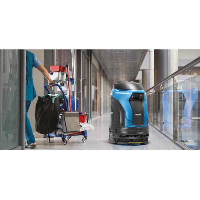 FIMAP CB-1 je robotický mycí stroj Fimap, který pomáhá profesionálům zlepšit produktivitu úklidu na zakázkách.